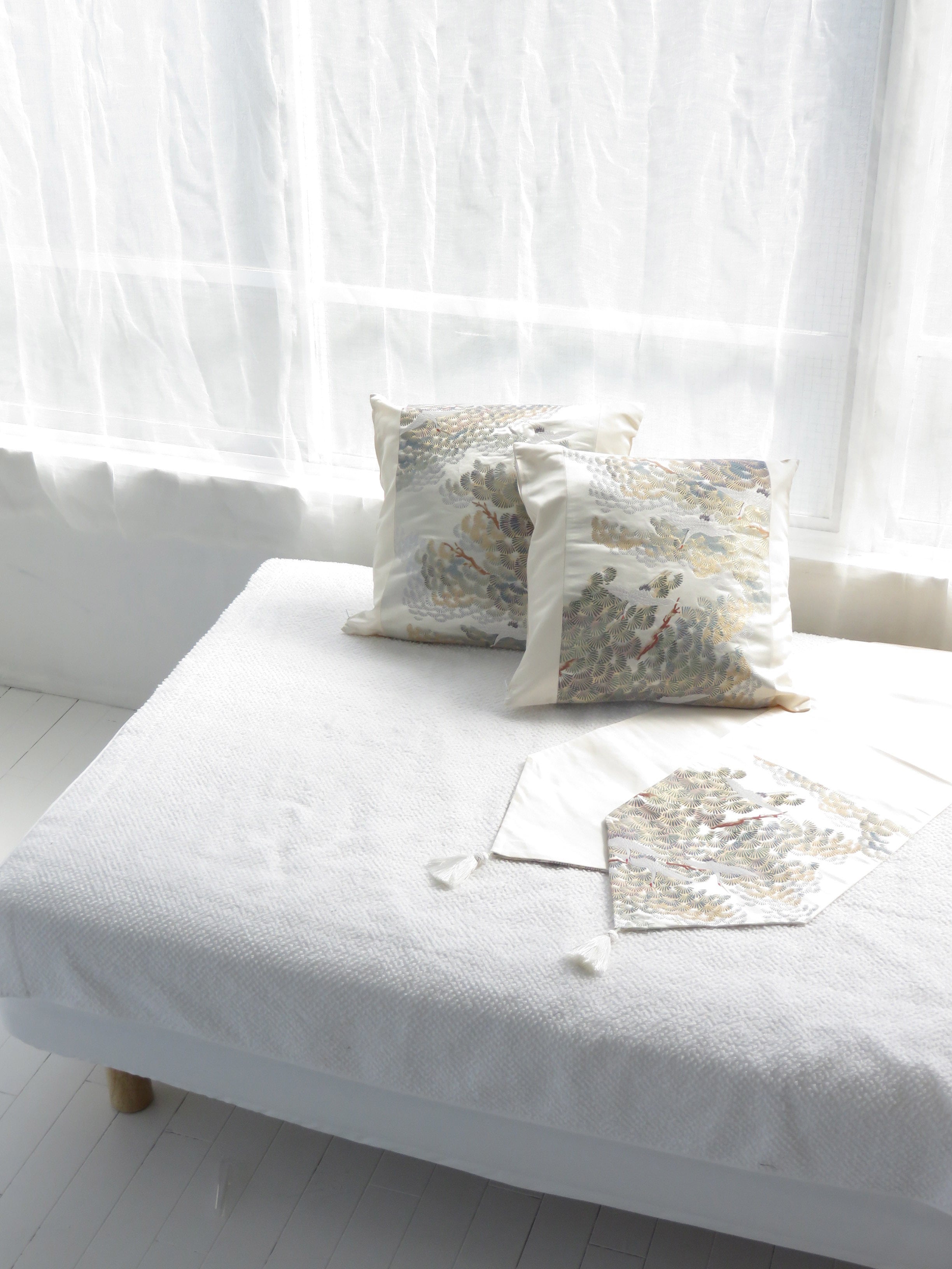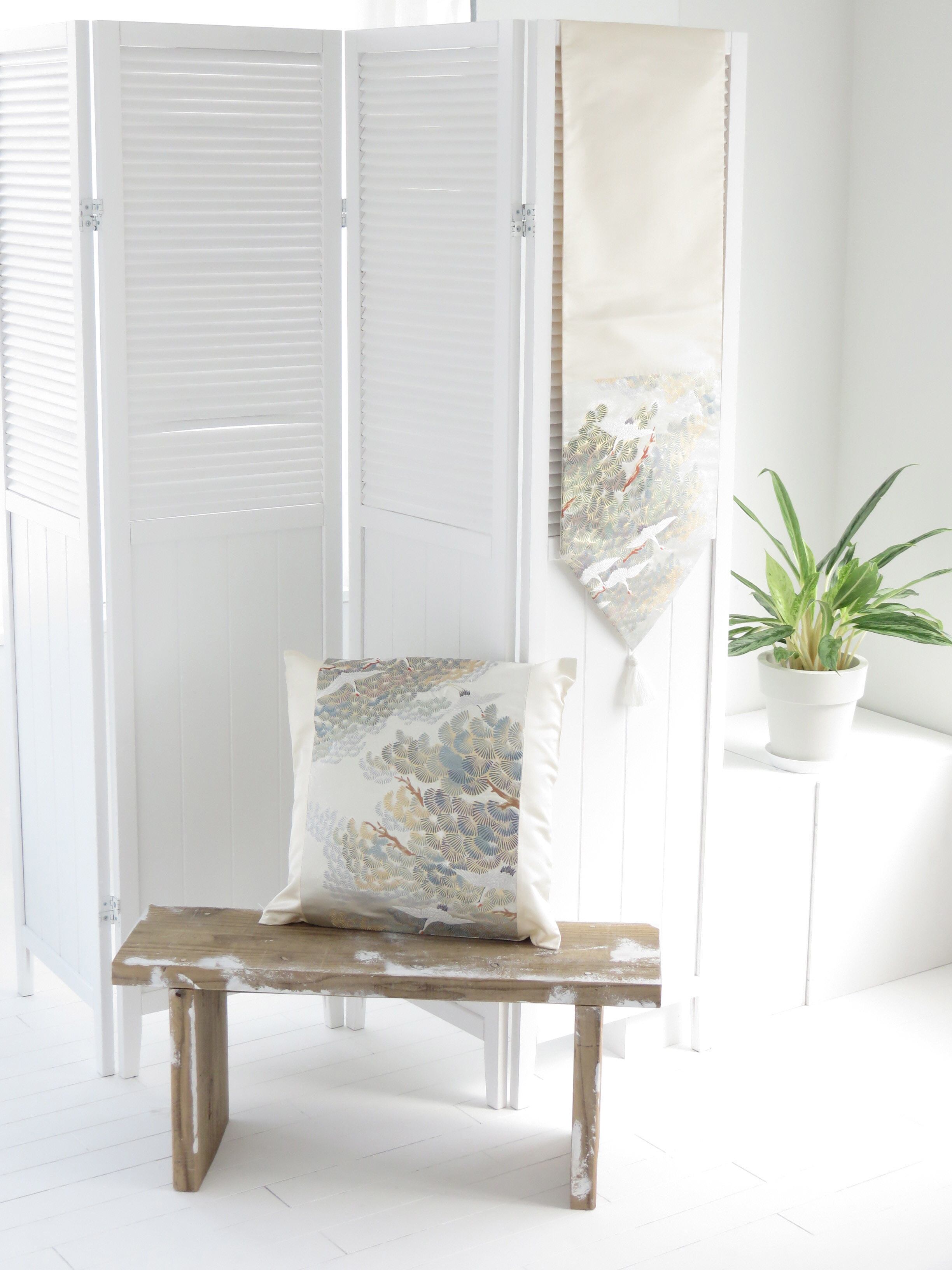 テーブルランナーは壁にかければタペストリーに。ベッドの足元に添えればベッドスローに。クッションと同じお部屋に置いていただくことで統一感がでます。