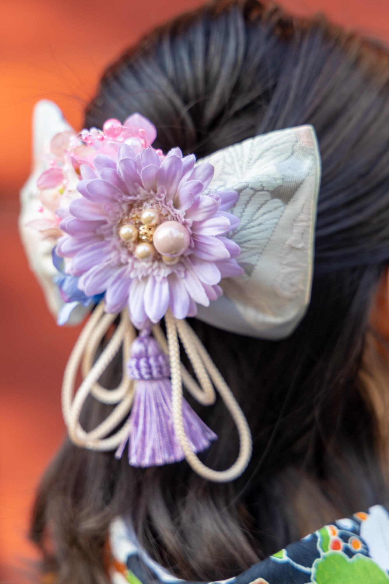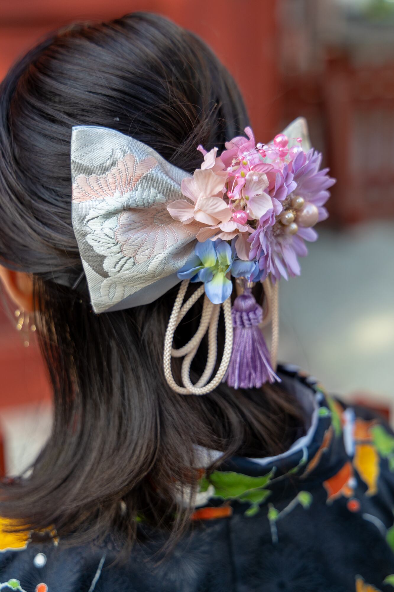 特別な日を華やかに彩る、ヴィンテージの帯から生まれた髪飾り